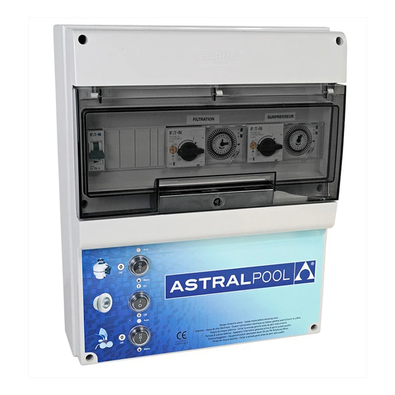 El Armario de Maniobra para 2 bombas de Astralpool es un armario para bombas con protección IP-65. Cuentan con un cristal transparente con cierre y llave para un mayor control y seguridad.