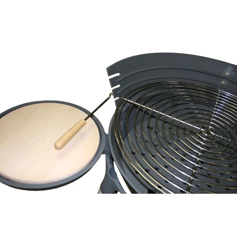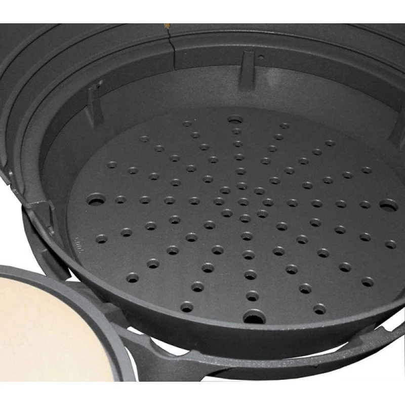 Barbacoa en fundición Shogun Grill de Invicta. Incluye 4 patas de madera tratada y un tablero de trabajo circular con marco de fundición para dejar los utensilios. Ligera y de fácil mantenimiento. Ideal para terrazas y jardín. De fácil mantenimiento y limpieza. Ha sido diseñada para facilitar su limpieza gracias a la salida de ceniza que se encuentra en el fondo de esta. La ventilación se efectúa con un difusor. Dispone de una rejilla de cocción con un diámetro de 50 cm.