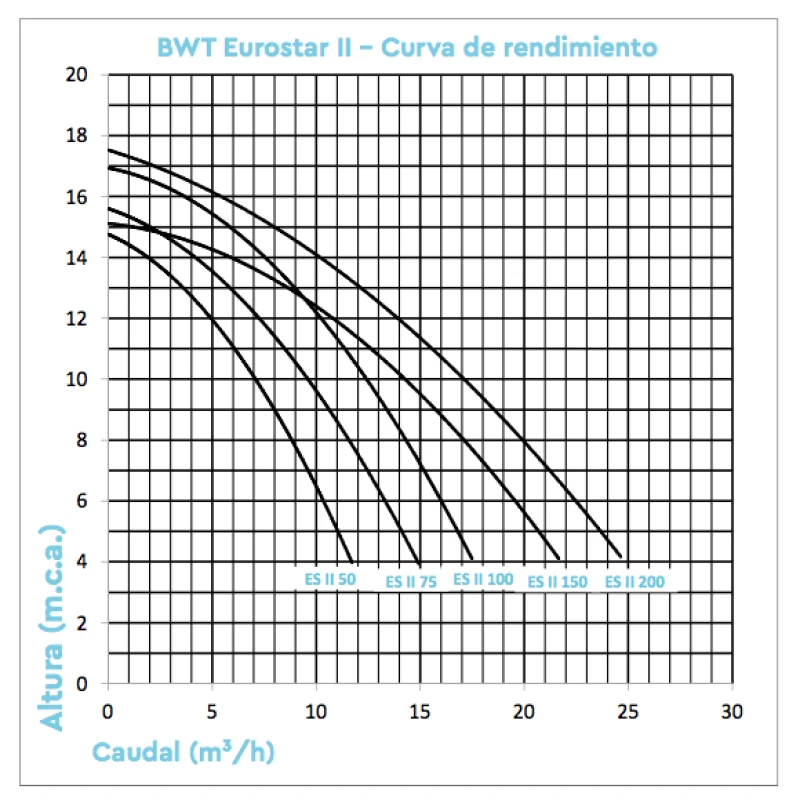 Bomba BWT Eurostar II 220V curva de rendimiento