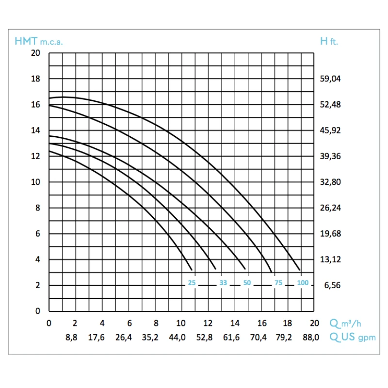 | Caudal m3/h a 10mca | 4,0 | 5,5 | 7,0 | 10 | 13 | 14,5 |