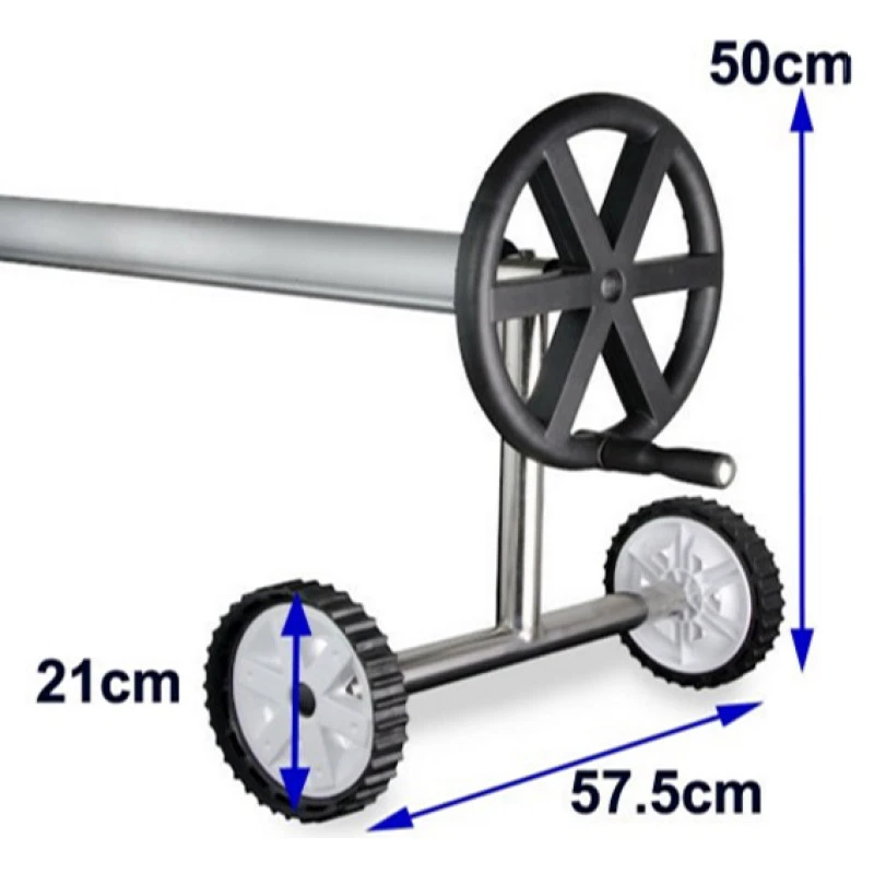 Dispone de dos ruedas en un lateral para facilitar el desplazamiento a cualquier parte casi sin esfuerzo. Gracias a su detallada contrucción y fabricación facilita la recogida de la manta térmica más pesada con menos esfuerzo