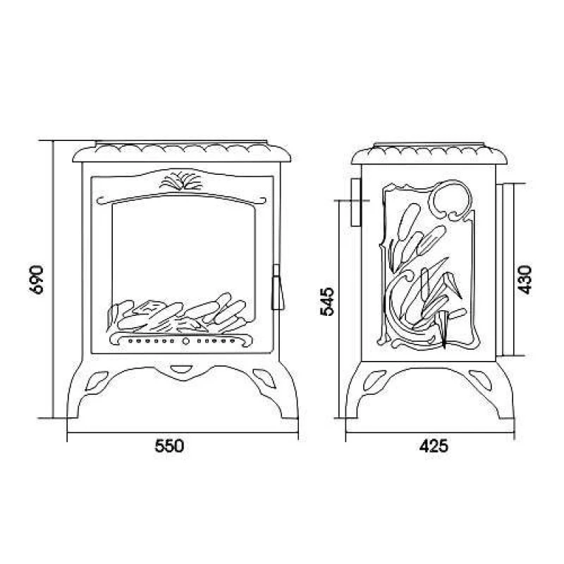 Fabricada con el mejor hierro fundido de primera calidad, tirador de puerta incluido. A la decoración de su diseño hay que añadir también el elegante cristal del dque esta dotada, elemento indispensable para gozar al máximo del maravillos espectáculo de sus llamas, sin olvidarnos de sus resistentes 4 patas de sujeción.