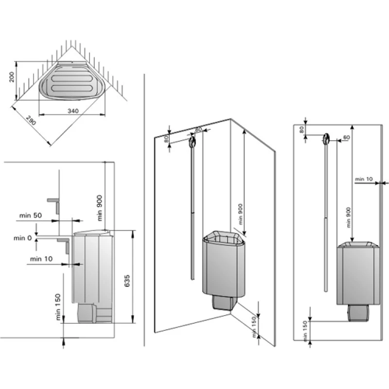 El modelo de estufa Delta Esquinera 3,6 Kw está pensado para saunas tradicionales de vapor de tamaños reducidos para espacios máximos de 4,5 M3.