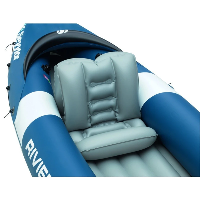 El modelo Riviera está confeccionado con PVC de alta resistencia reforzado con una capa de nylon. Para incrementar, aún más, la fortaleza y consistencia del kayak, se han incorporado 3 cámaras de aire en los laterales de la embarcación. De esta manera, ante el riesgo de sufrir pinchazos o roturas, el kayak seguirá funcionando y podrá utilizarlo para regresar a la orilla. Una medida de seguridad realmente práctica.