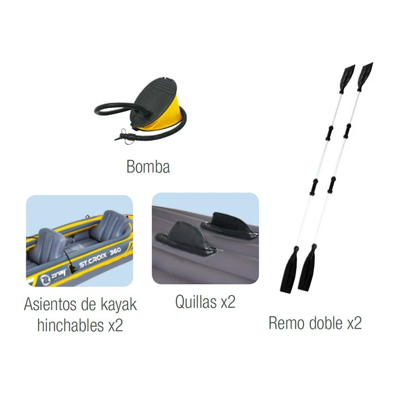 Otras razones por las cuales amar el kayaking es el bajo coste que supone su práctica. Únicamente debe realizar la inversión inicial y olvidarse de pagar cuotas mensuales. La naturaleza es su pista de entrenamiento, por lo que no se verá en la obligación de pagar por la instalación. Además, el modelo St. Croix incluye 2 remos dobles y la bomba de hinchado, por lo que no tendrá que adquirir los accesorios por separado.