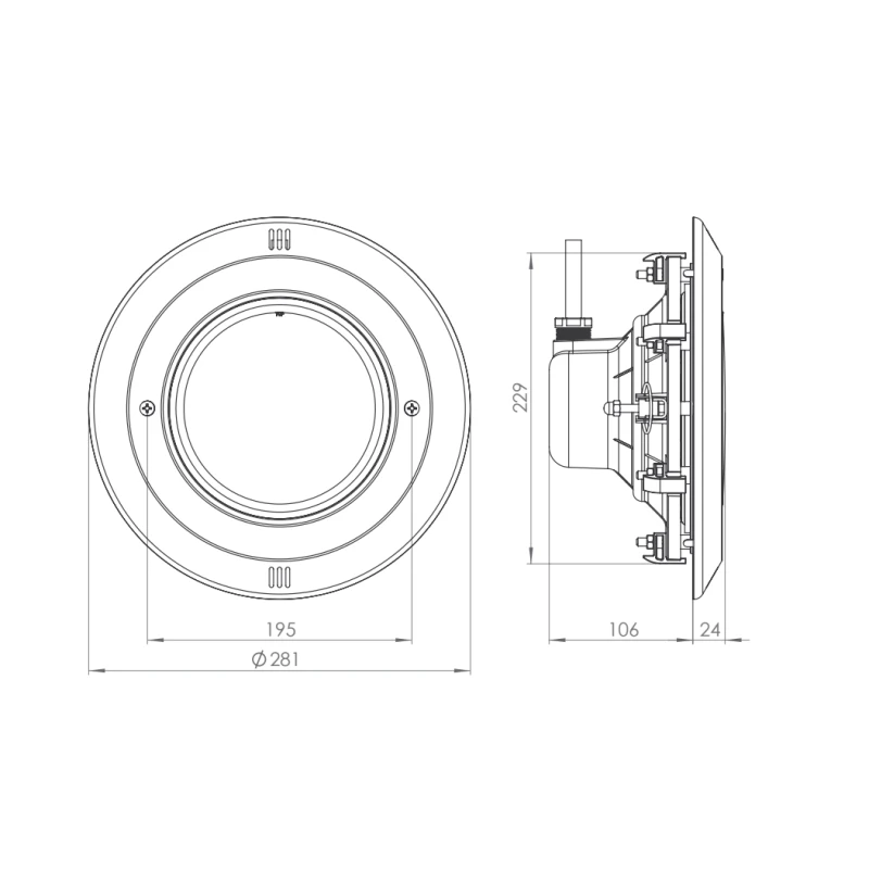 Un proyector PAR56 se instala en piscinas construida con hormigón, donde hemos planteado y organizado la cantidad de focos que irán colocados según el tamaño de la piscina. Los focos Essential por normal general al tener un haz lumínico bajo y poca potencia se recomienda un proyector cada 15 m2 aproximadamente con algunas reglas a tener en cuenta como evitar los proyectores orientados mirando hacía la vivienda y también evitar que se enfrenten entre los focos si son piscinas de menos de 12 o 14 metros con lo que la mayoría quedarán colocados en los lados largos. Como norma, se suelen colocar los focos cada 2,5 metros entre ellos y a una altura del fondo de la piscina de unos 70 cm aproximadamente.
